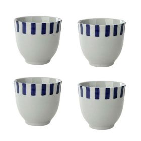 4Pcs Japanese Style Blue Short Stripe Ceramic Teacups Small Straight Wine Glass 150ML